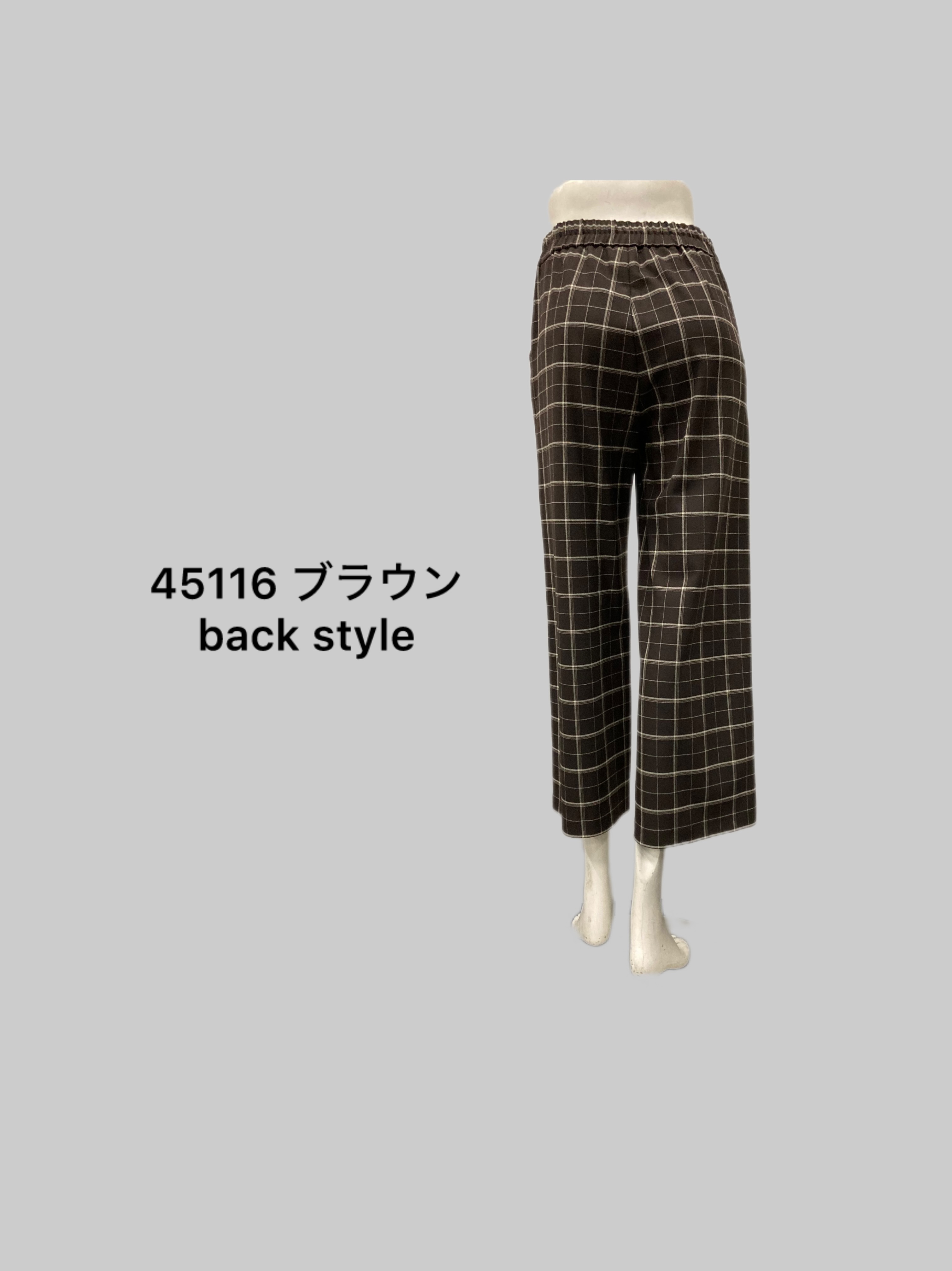 【期間限定26%off】2026年新春セール 45116アルガンオイル加工先染チェックワイドパンツ