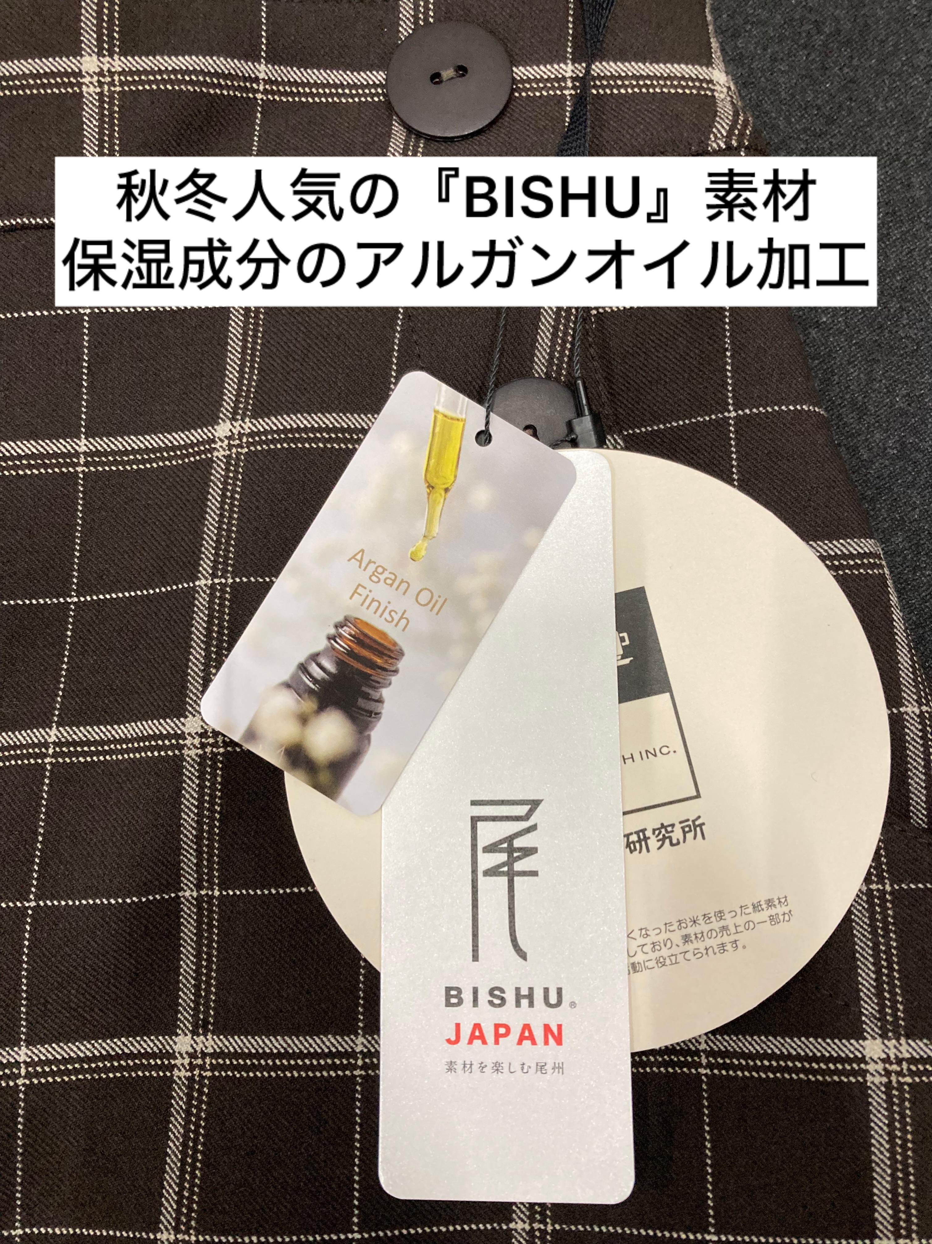 秋冬人気の「BISHU」の先染チェック素材に保湿成分アルガンオイル加工を施した、今期人気商品を最終処分価格で数量限定販売します。