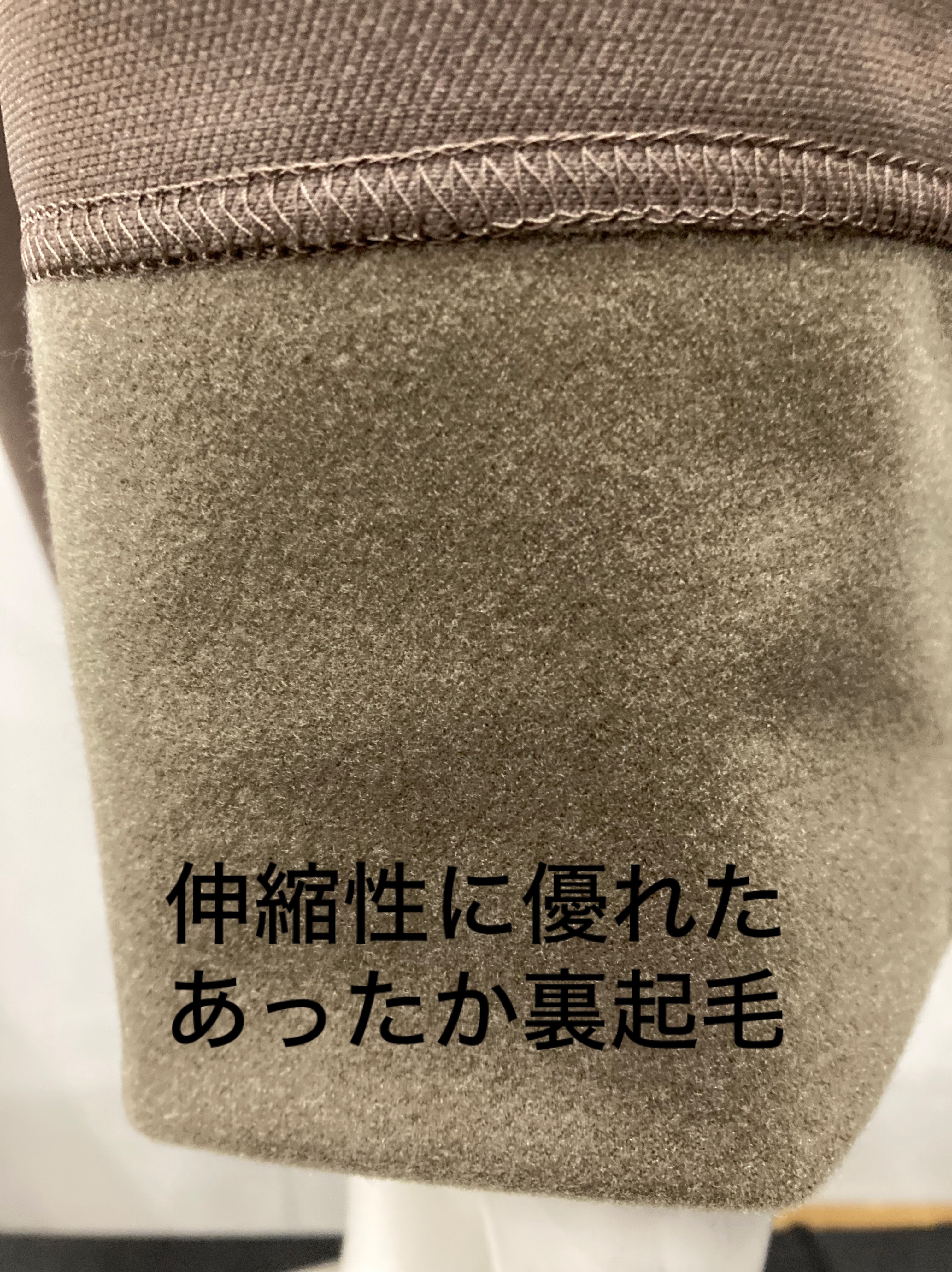 伸縮性に優れ、あたたかい裏起毛素材。